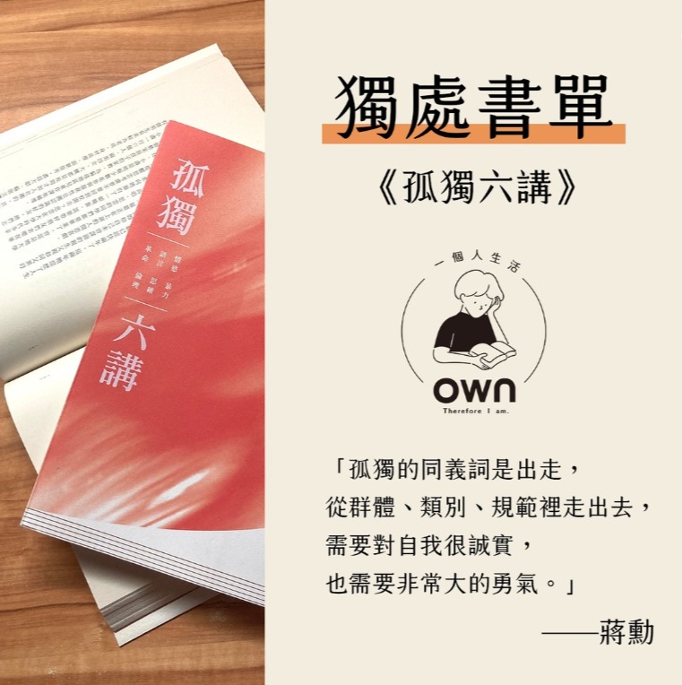 ✭ 《孤獨六講》佳句07:「孤獨的同義詞是出走,從群體、類別、規範裡走出去,需要對自我很誠實,也需要非常大的勇氣。」
