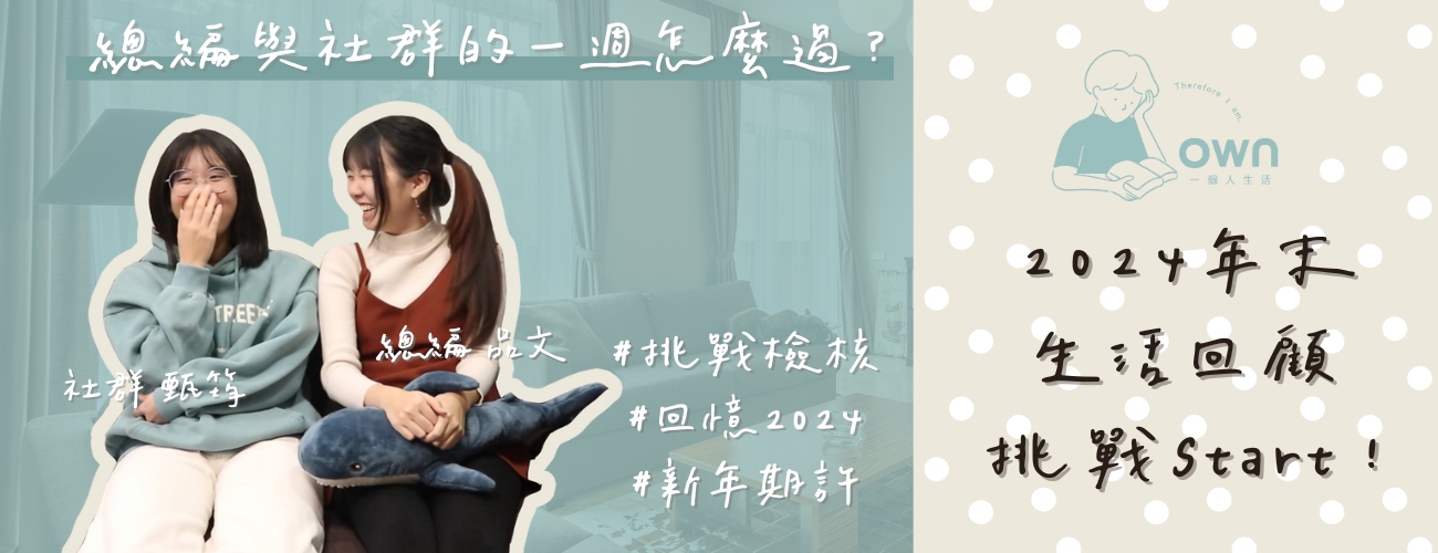 搖搖擺擺地走向成立兩年,《own 一個人生活》聚集了讀者們的支持、創作者們的幫忙和團隊成員們的心血,才能走到今天的樣子,即使沒有薪水、沒有太多的業界經驗,我們仍希望能讓享受獨處、擁有自己的理念被更多人看見,也歡迎看到這裡的你加入我們,成為我們的一份子!