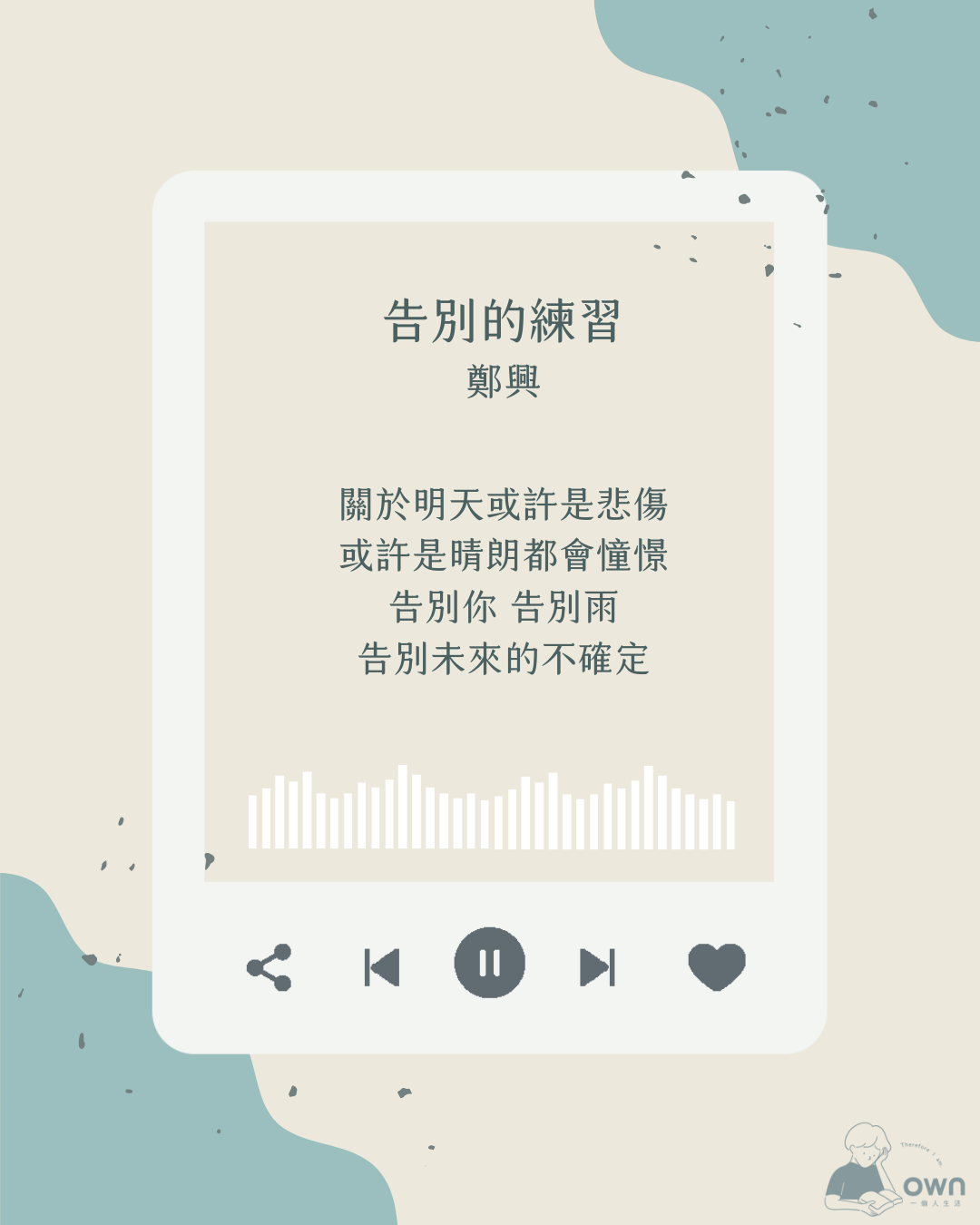 練習慢慢說再見:「我會堅持不懈的練習,練習哭、練習走、練習離開得很堅定。」