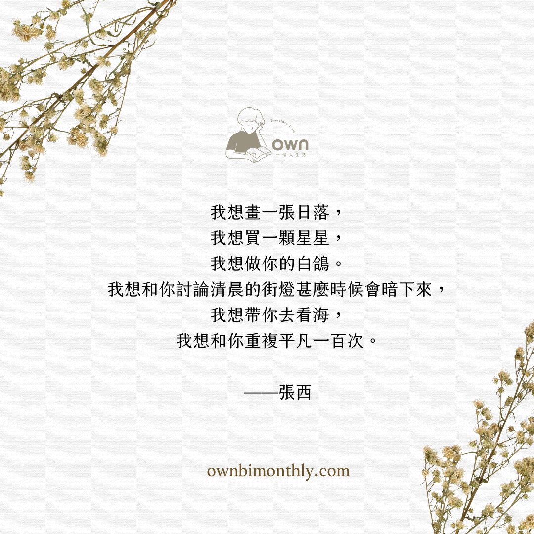 更多屬於你的浪漫與自我探索,收錄於《own 一個人生活》雜誌,邀請你一起發現——「愛自己、愛生活,也勇敢愛人。」