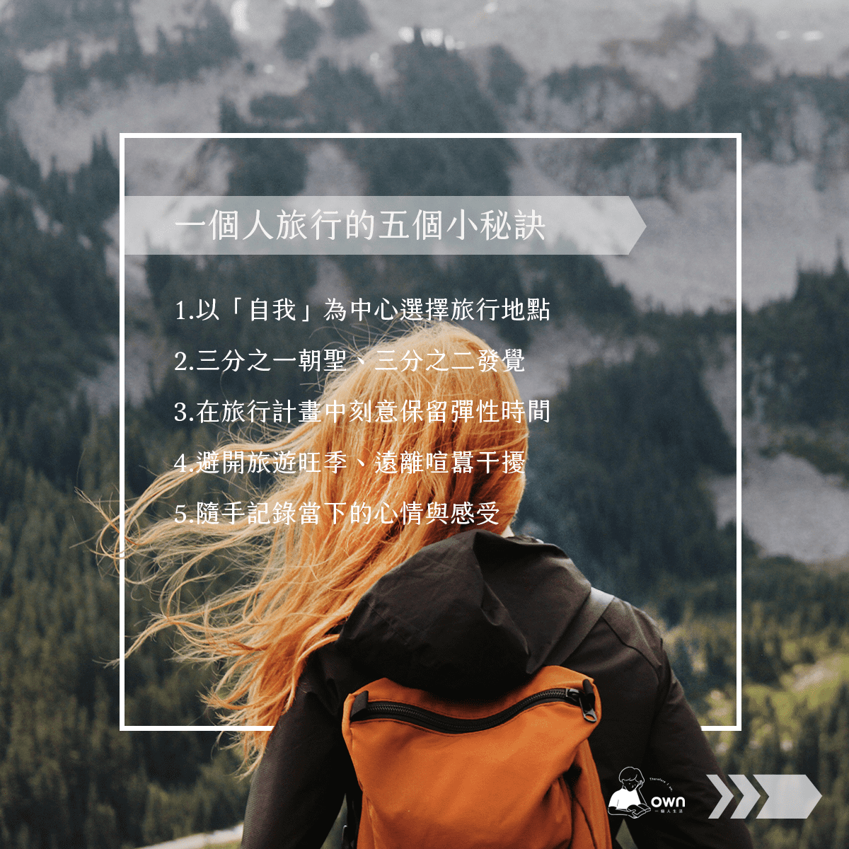無論想去什麼地點,都應該以自己的心情和想法為優先,而不是在社群的簇擁下選擇,才能達到獨旅的目的!