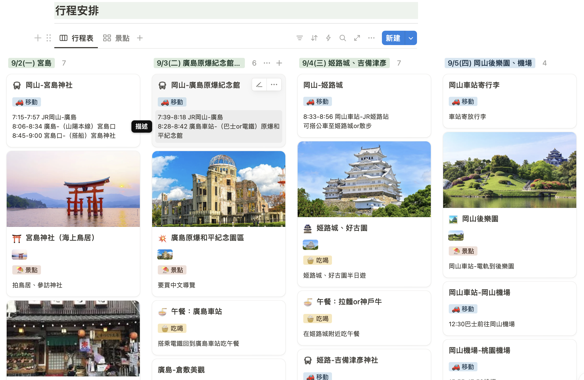 規劃的操作相對 Notion 較為直覺,推薦給喜歡獲得不同資訊、豐富旅程的你。